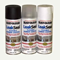 More InfoRUST-OLEUM® LeakSeal™ Spray Flexible sealer Easy to use aerosol spray Rubberized seal that fills cracks Top coat with oil or latex-based paint Use on aluminum, galvanized metal, concrete, masonry, PVC, fiberglass, vinyl siding, and more. Available in three colors
