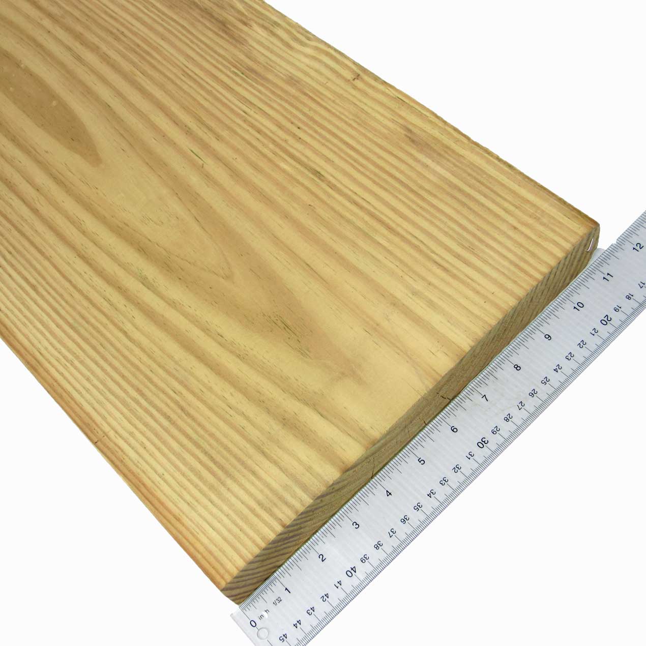 Our 2×12 GC KDAT Treated Lumber is a #1 grade and below-ground treated. This grade allows for up to medium knots, wane and other imperfections. There will be fewer knots and smaller in size than in the #2 grade. It is sold by the board in 10′, 12′ and 16′ lengths. Boards are S4S where both sides and edges are planed smooth. Actual board dimension is 1-1/2″ thick by 11-1/4″ wide. This board is often used for deck bands and stair stringers.